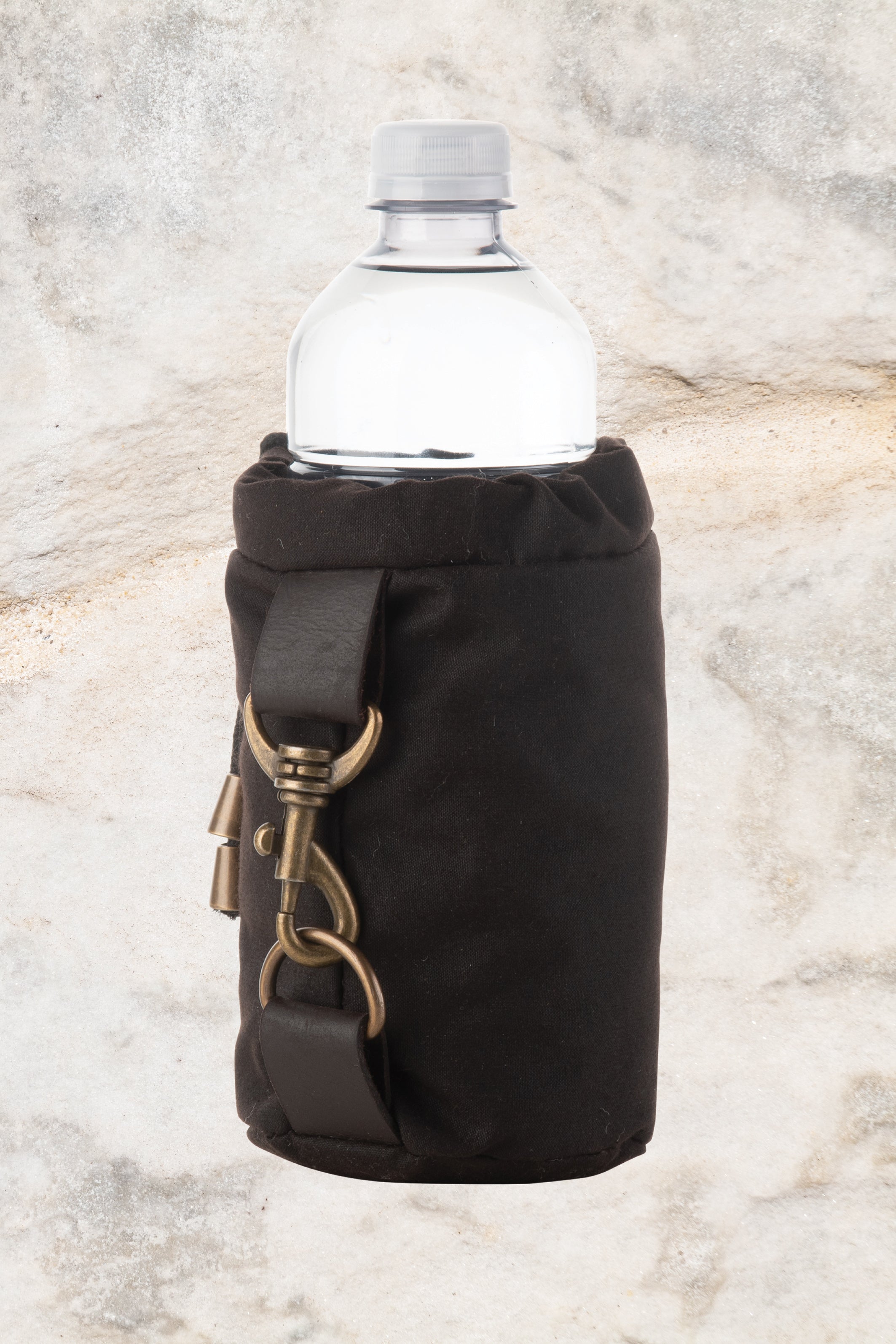 - Leather trim with metal clasp to attach cooler to belt, bag, saddle and more
