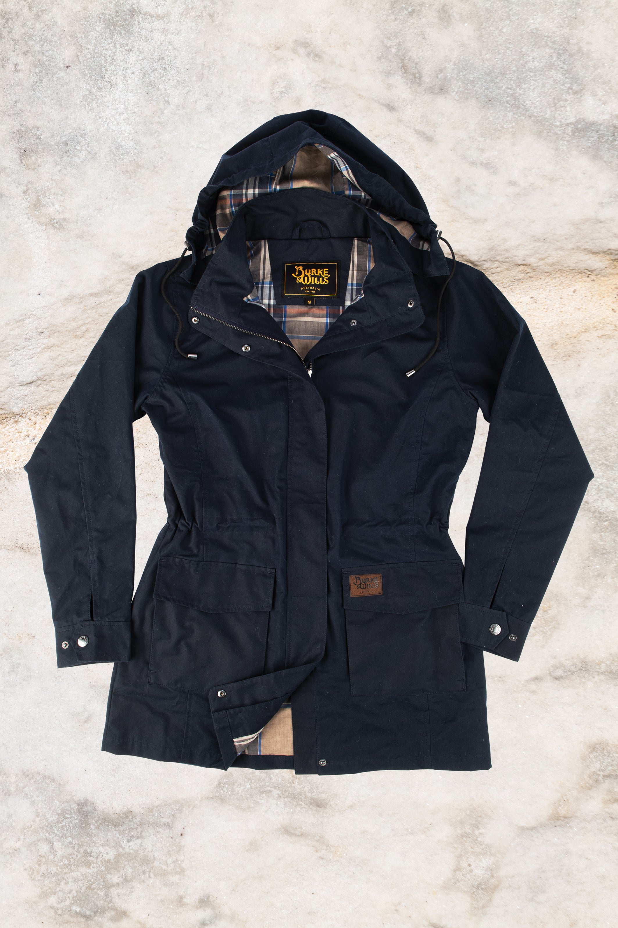 The Burke & Wills Womens Corella Jacket is the perfect tran-seasonal jacket. It is made from the lightest weight 6oz Cotton Dri-Tec Waxed fabric and is ideal for those in-between days. The jacket is effortlessly stylish and features a light cotton check lining for added comfort and breathability, a detachable hood and a drawcord on the inside waist allowing the fit to be adjusted.